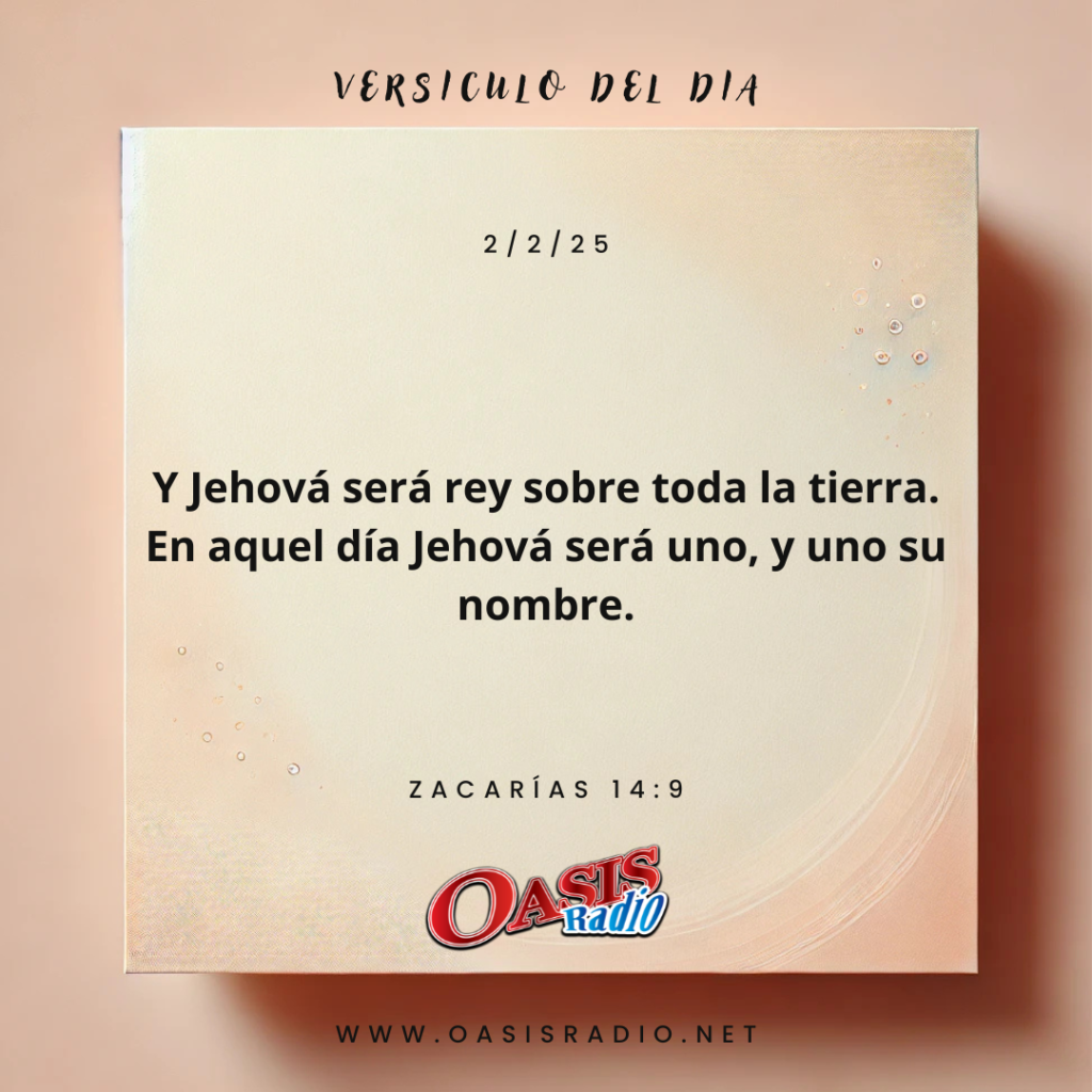 Y Jehová será rey sobre toda la tierra. En aquel día Jehová será uno, y uno su nombre. Zacarías 14:9
